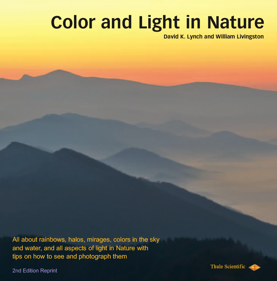What is a rainbow? How many are there? Why is the sky blue? Why is the setting sun red and flattened? What is a mirage? Why are there rays or spokes coming from the setting sun? What is the green flash? Can it be photographed? Why does the moon look so big on the horizon? Why do stars twinkle? What is an aurora borealis? Is it really darkest before dawn? Why are wet spots dark? What is that ring around the Sun? Why can water appear so many different colors? These and dozens of other questions about naturally occurring optical effects are explained with pictures and diagrams, along with tips on how to see and photograph them. Authors David K. Lynch and William Livingston are astronomers. One of Choice's Outstanding Academic Books for 1996. Order Color and Light in Nature