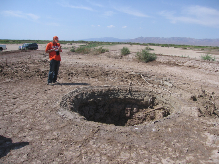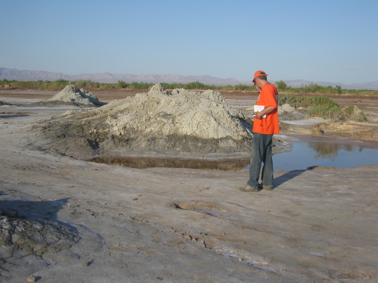 Dr. Kenneth Hudnut studying a mud volcano.